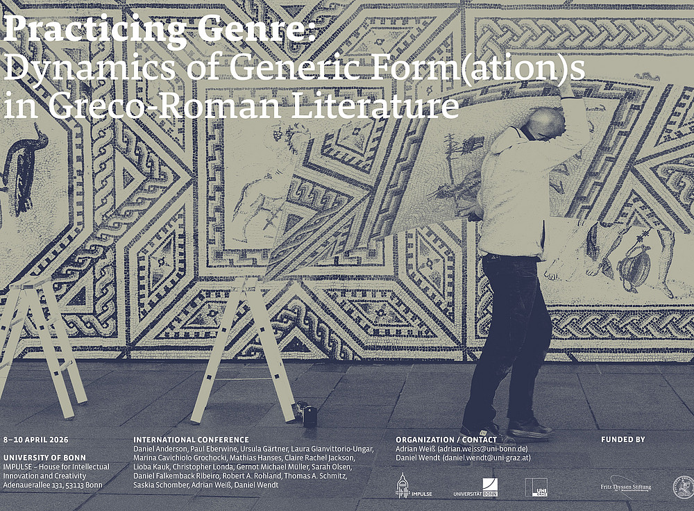 Das Institut für Antike lädt zur internationalen Tagung “Practicing Genre. Dynamics of Generic Form(ation)s in Greco-Roman Literature” an der Universität Bonn ein.